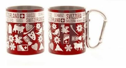 Metall-Mugbecher m/Karabinerhaken "Typisch Schweiz