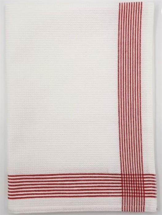 Waffeltuch weiss, Streifen rot 50x70cm Alpenblume