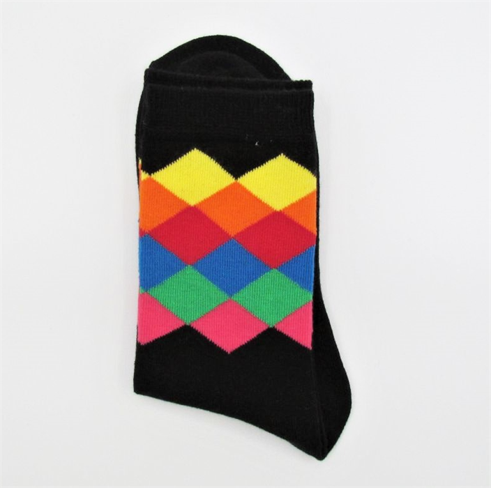 Damensocke schwarz 36-41 mit farbigen Quadraten