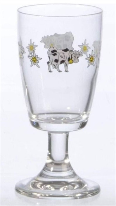 Kafiglas Pilatus 20cl, Dekor: "Happy Cow", 3farbig