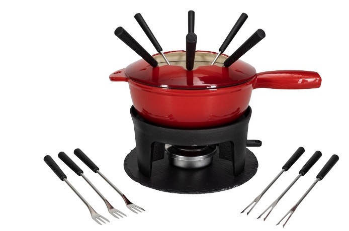 Fondue - Set "two in one", rot schwarz, 16-teilig
