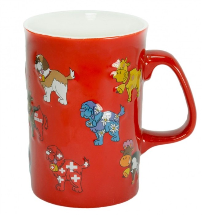 Animal Mug rot mit Hunden und Kühen