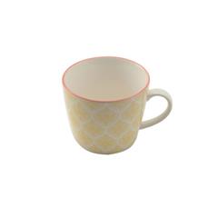 Henkelbecher gelb Rand rot